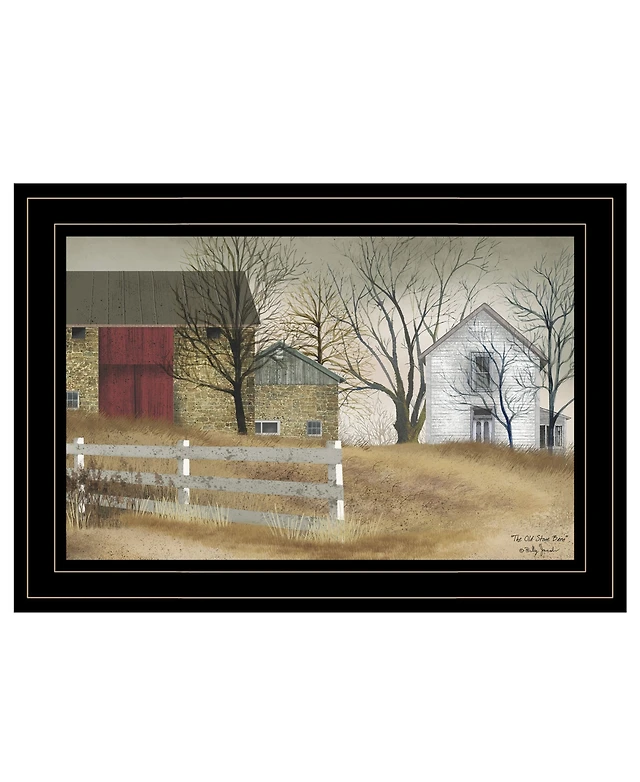 Trendy Decor 4U The Old Stone Barn by Billy Jacobs, Ready to hang Framed Print, Black Frame, 15" x 11"