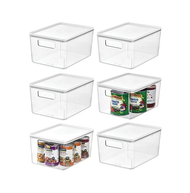 iDesign Pantry Bin with Removable Lid for Kitchen, Set of 3, Clear/White