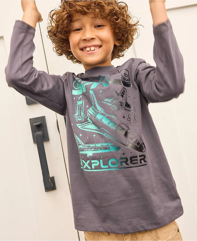 Boys Motorcycle Long-Sleeve Graphic Tee - Grey
