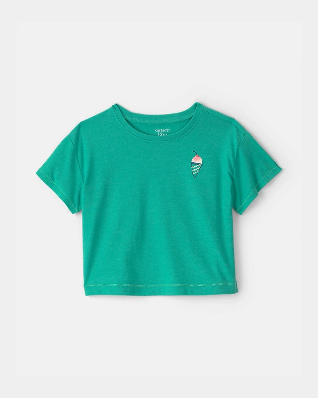 Girls 'Beach Season' Summer Graphic Tee - Green