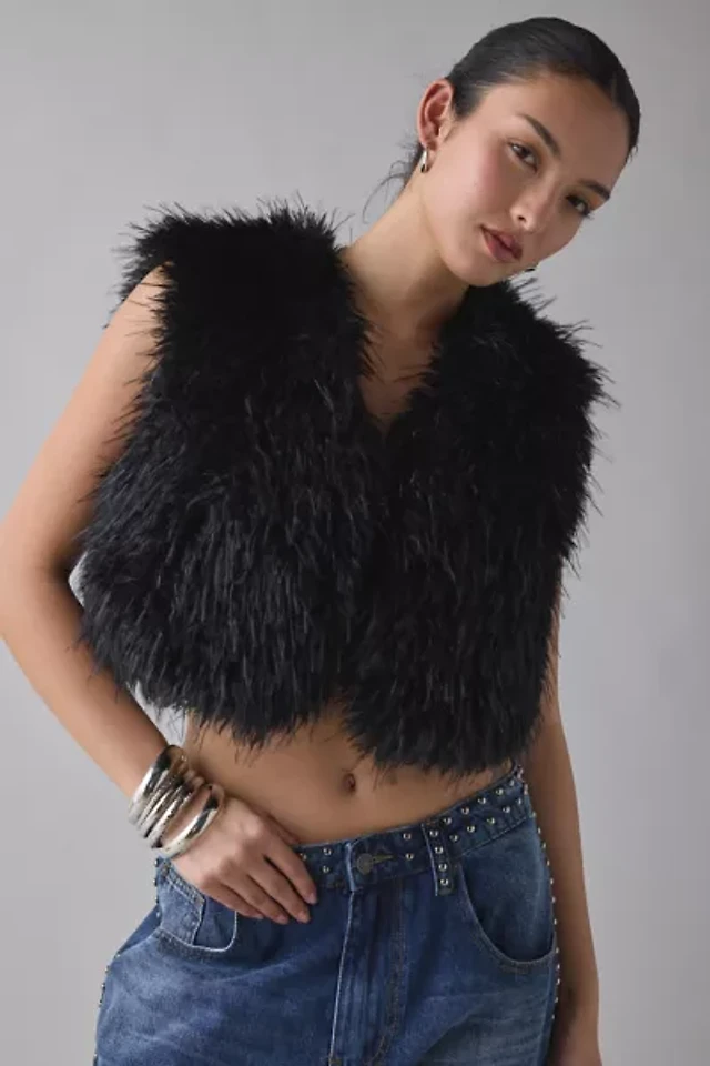 Azalea Wang Camille Cropped Black Faux Fur Vest