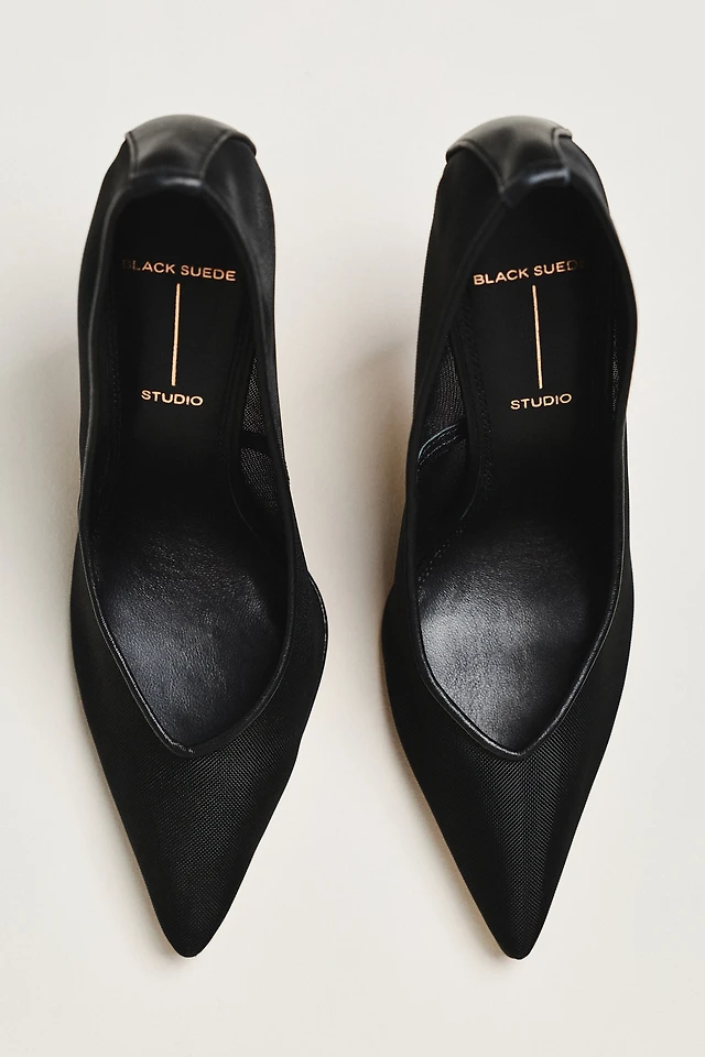 Black Suede Studio Clio 100 Mesh Pumps