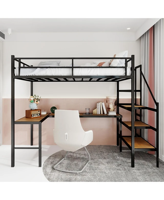Streamdale Furniture Twin Gaming Loft Bed with Storage Stairs, Desk