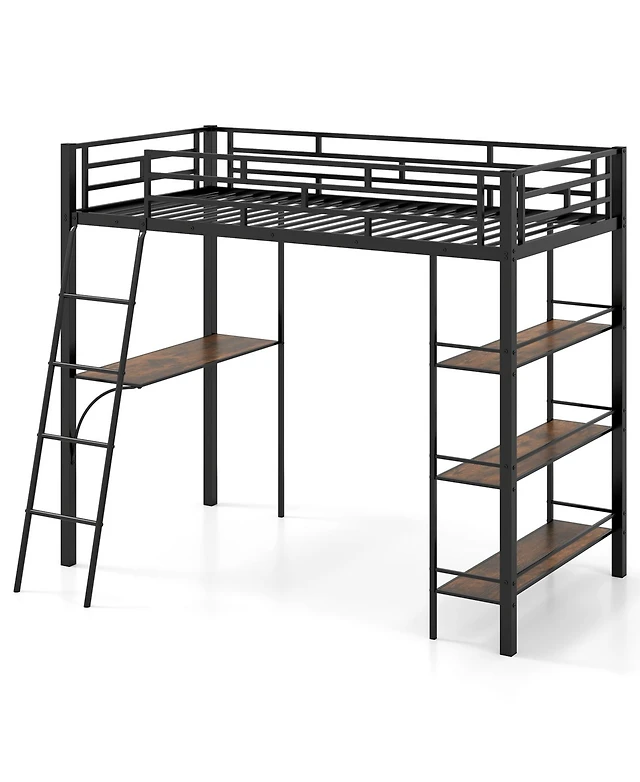 Gymax Twin Size Loft Bed w/ Desk & Shelves Inclined Ladder & Full-length Guardrails