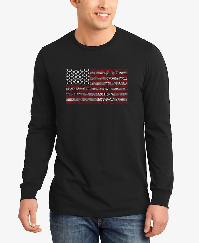La Pop Art Men's Word American Flag Fireworks Long Sleeve T-shirt