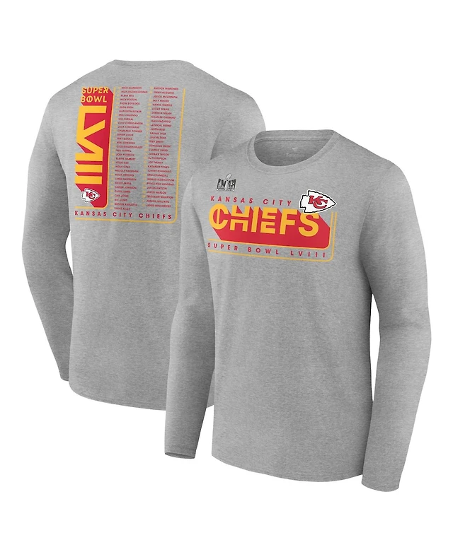 Men's Fanatics Heather Charcoal Kansas City Chiefs Super Bowl Lviii Roster Long Sleeve T-shirt