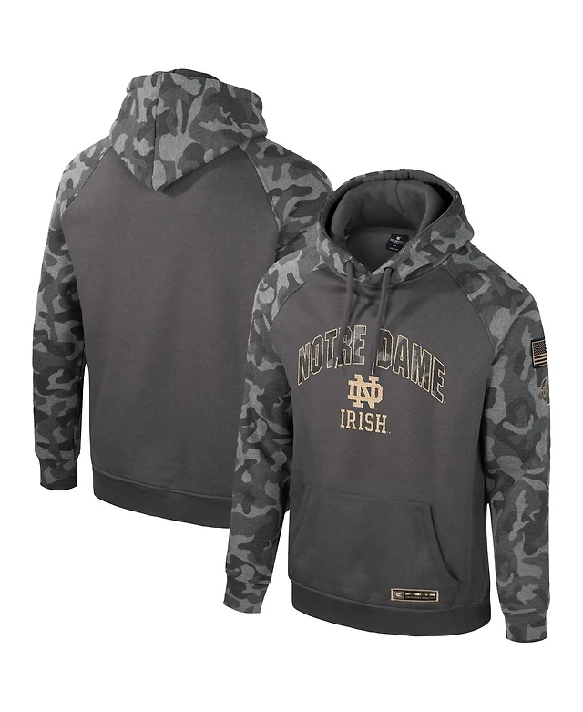 Men's Colosseum Charcoal Notre Dame Fighting Irish Oht Military-Inspired Appreciation Camo Raglan Pullover Hoodie
