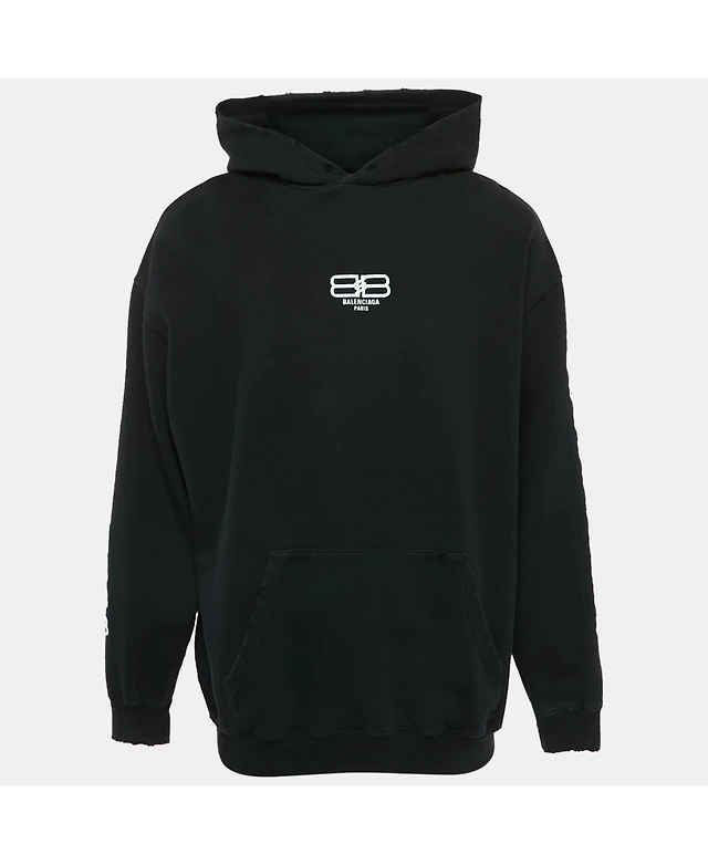 Pre-Owned Balenciaga Men's Unisex Black Bb Icon Cotton Hoodie