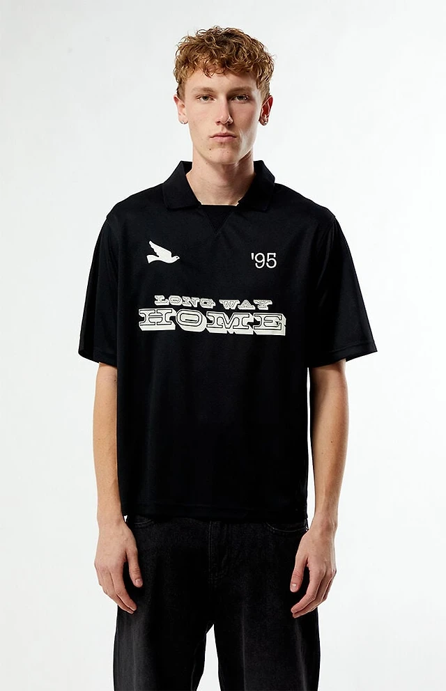 Pacsun Kids Black Waffle Knit Embroidered Camp Shirt