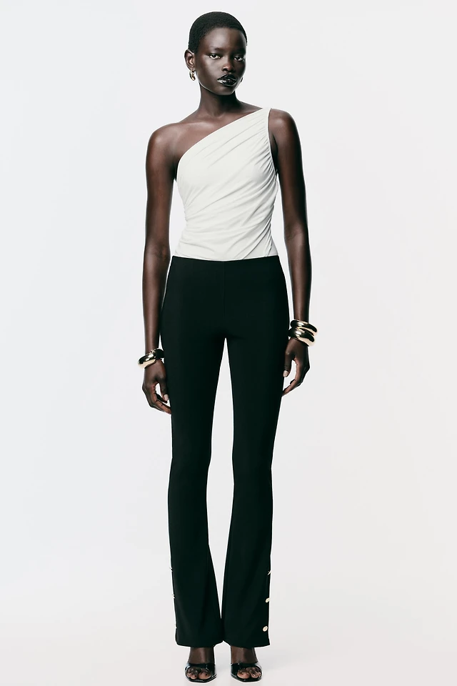 Deux par Girl Ribbed Leggings Bootleg with Slit Black