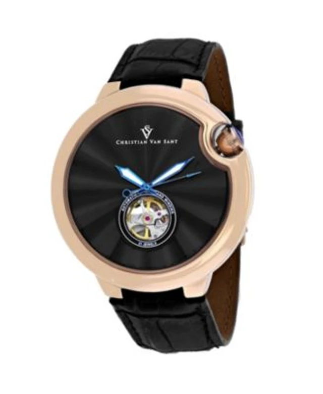 Caravelle Designed by Bulova Men's Automatic Black Leather Strap Watch 39.5mm