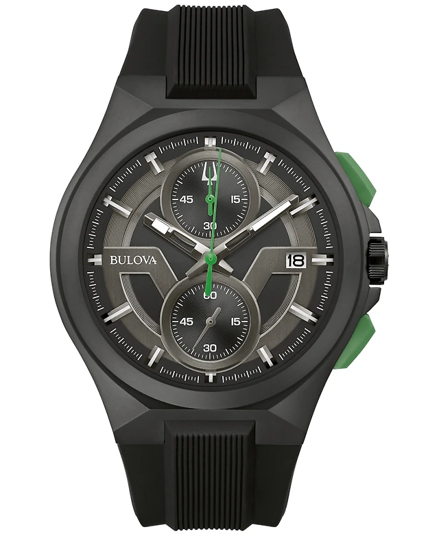 Bulova Men's Chronograph Maquina Black Silicone Strap Watch 46mm