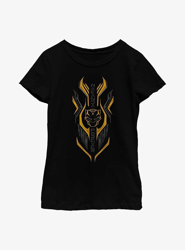 Marvel Black Panther: Wakanda Forever Golden Emblem Youth Girls T-Shirt
