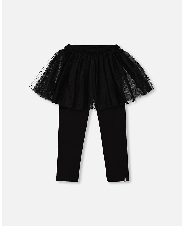Deux par Girl Jersey Leggings Black Teddy Bear Print - Child