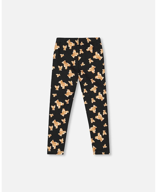 Deux par Toddler Girls Jersey Leggings Black Teddy Bear Print - Toddler|Child