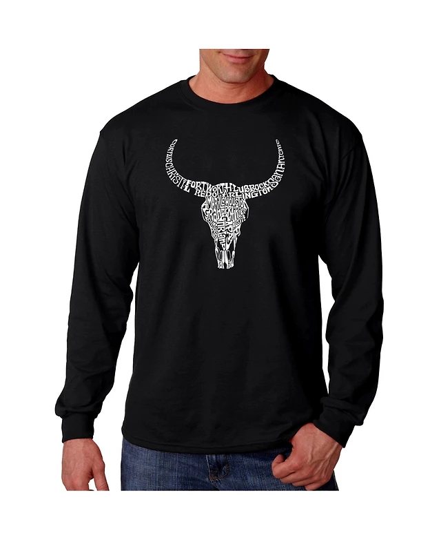 La Pop Art Men's Word Long Sleeve T-Shirt - Texas Skull