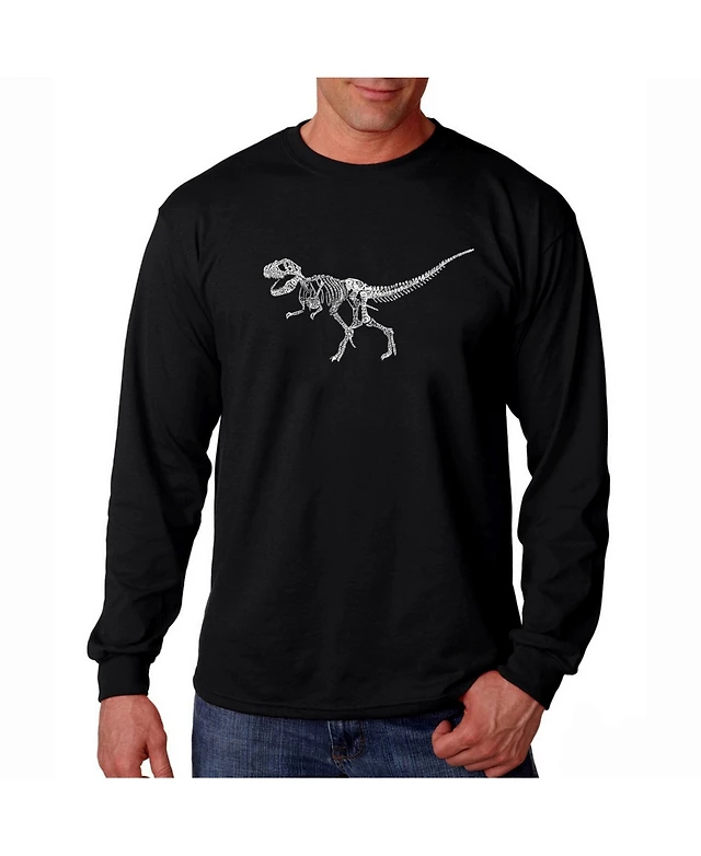 La Pop Art Men's Word Long Sleeve T-Shirt - Dinosaur T-Rex Skeleton