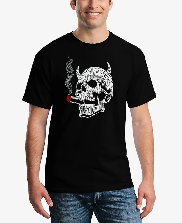 La Pop Art Men's Word Flower Skull Short Sleeve T-shirt