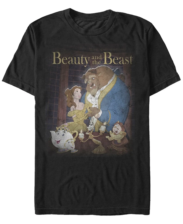 Disney Men's Beauty and The Beast Distressed Vintage Group Shot Short Sleeve T-Shirt
