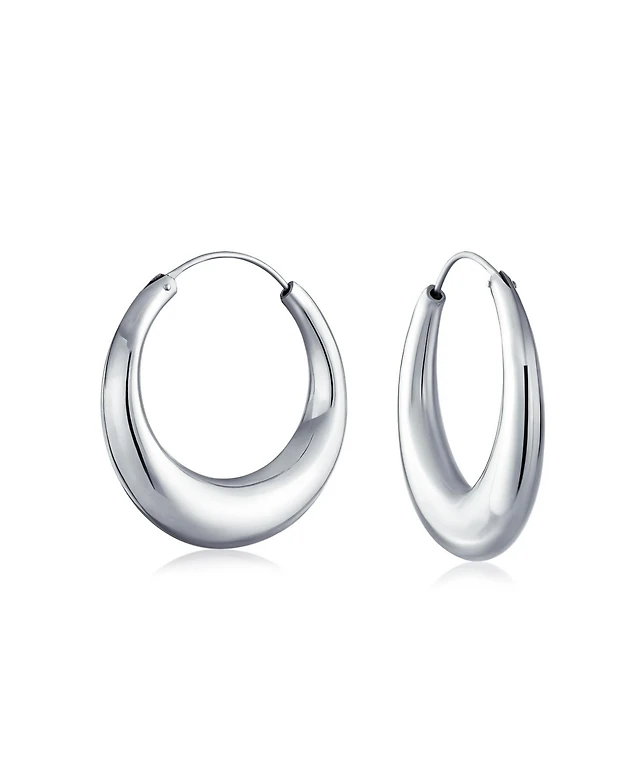 Bling Jewelry Simple Plain Circle Crescent Tapered Tube Hollow Puff Tube Round Hoop Earrings Sterling Silver Endless 1.25 Inch