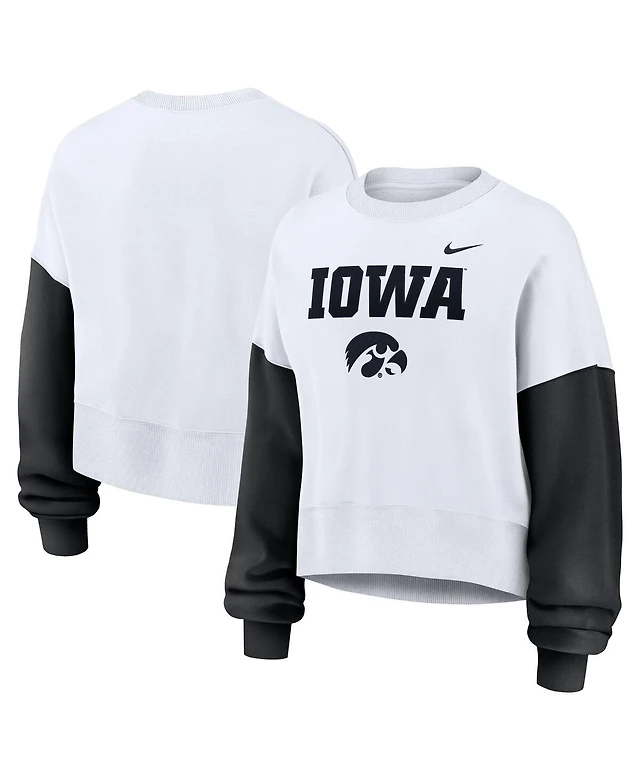 Nike Women's White Texas Longhorns Color-Block Oversized Cropped Pullover Sweatshirt