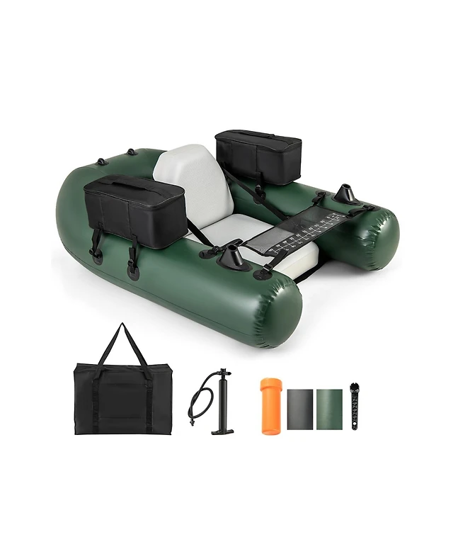 Inflatable Fishing Float Tube with Fish Ruler Angling Base 2 Storage Pockets Pump