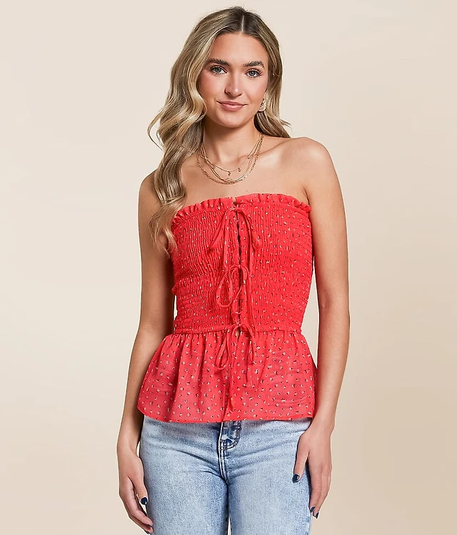 Embroidered Floral Peplum Tube Top