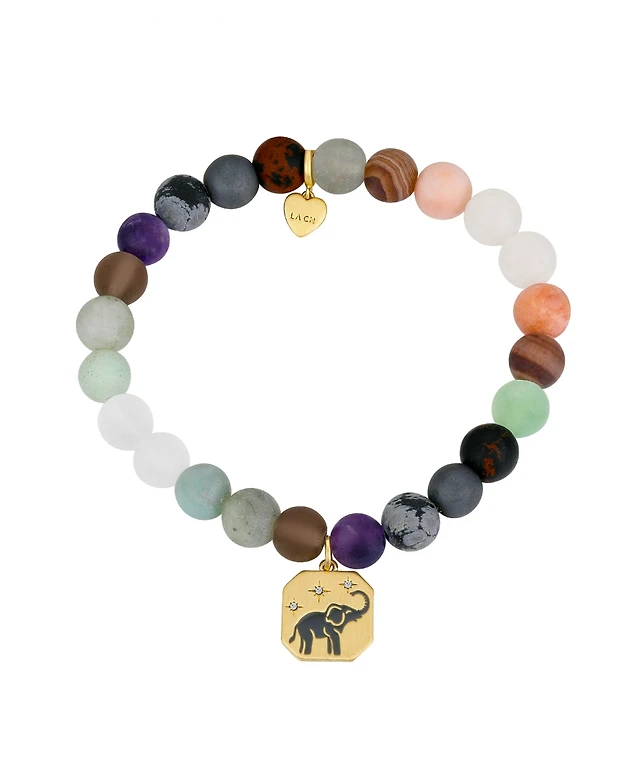 Gold Flash Plated "Grateful" Genuine Stone Stretch Bracelet