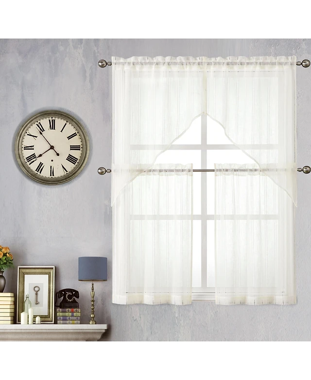 Kate Aurora Modern Chic Complete 4 Piece Striped Sheer Kitchen Curtain Tier & Valance Set - Beige