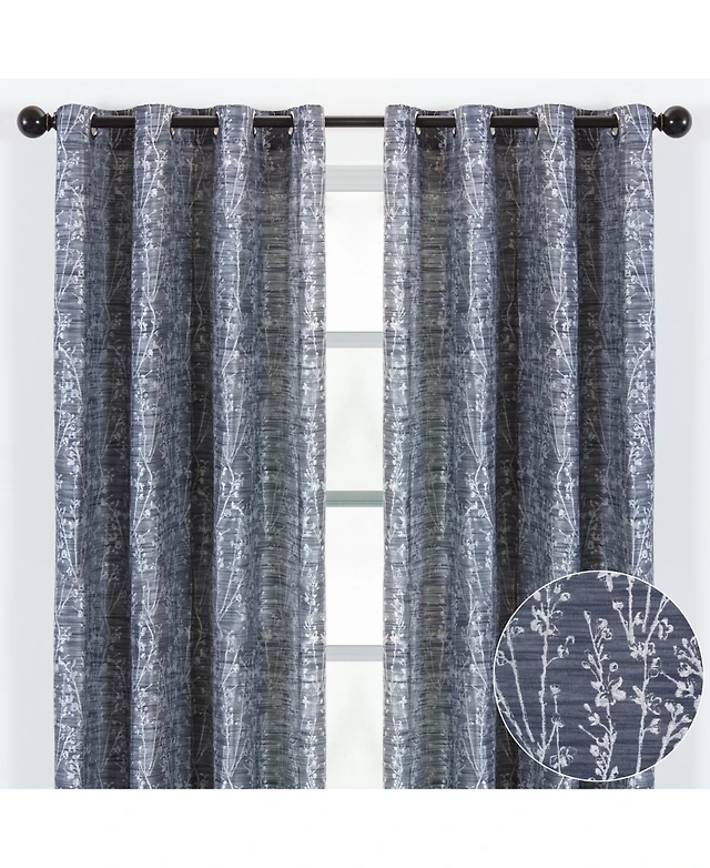 Ellis Curtain Lexington Leaf Pattern on Colored Ground Curtain Pair with Ties 56" x 84'' Blue