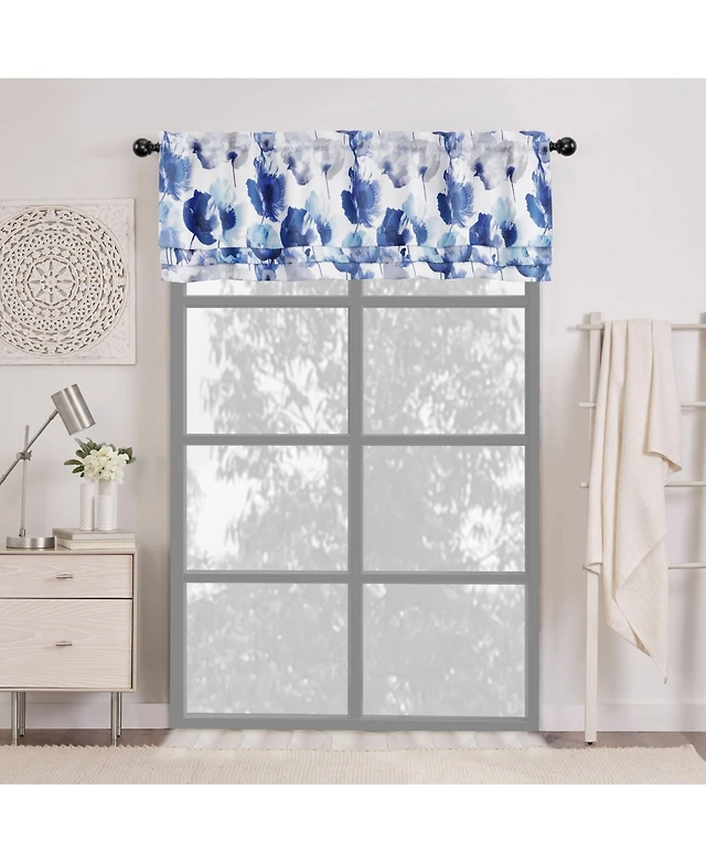 Kate Aurora Garden Chic Watercolor Poppy Field Floral Rod Pocket Valance
