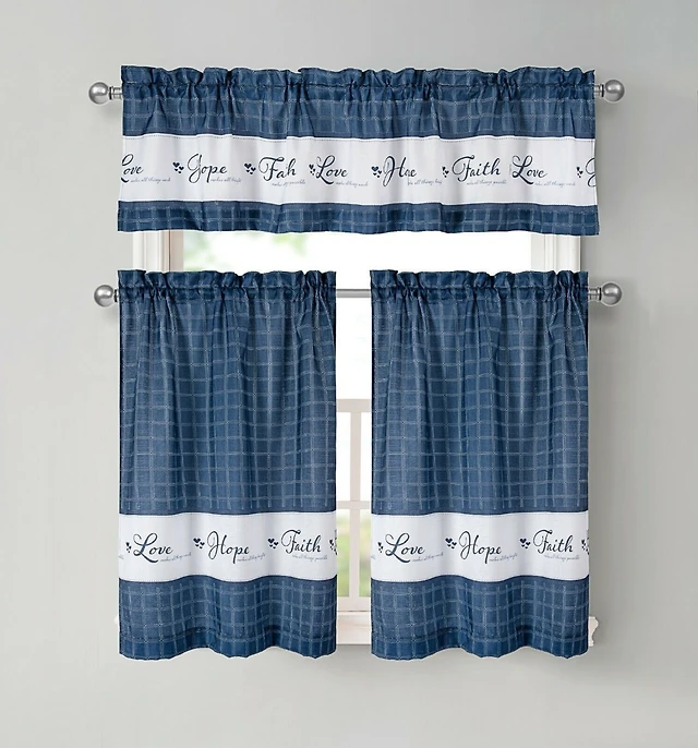 Kate Aurora Floral Embroidered Sheer Rod Pocket Kitchen Curtain Tier & Valance Set - 58 in. W x 15 L, Aqua