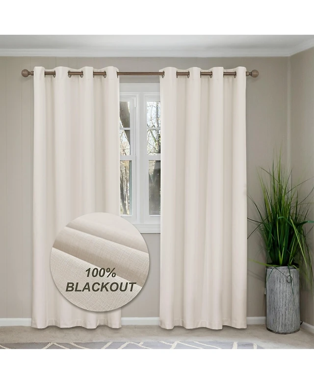 Kate Aurora Hotel Living 2 Pack 100% Blackout Grommet Top Ivory Beige Curtain Panels