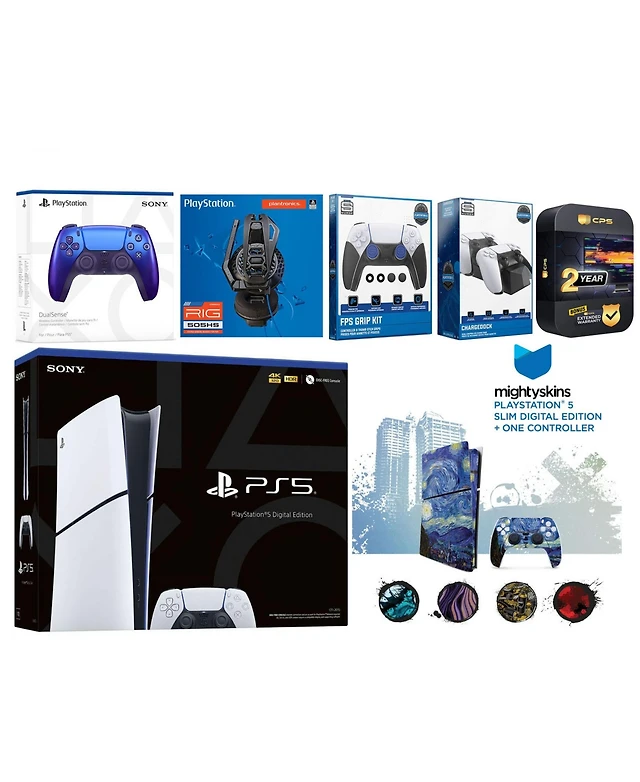 Sony PlayStation 5 Slim Digital Bundle with Disc Drive, Extra Controller, MightySkins Code and 1 Year Extended Warranty