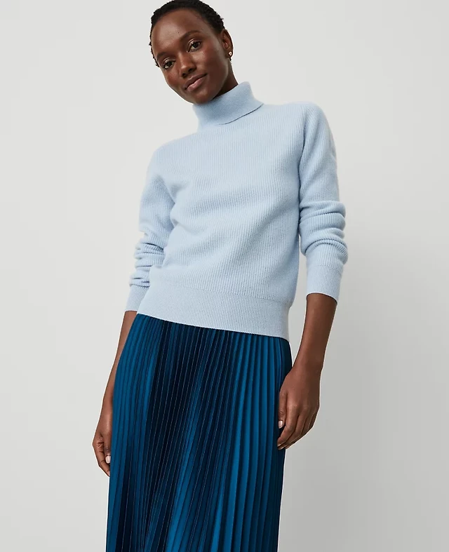 Ann Taylor Cashmere Ribbed Turtleneck Sweater Women's