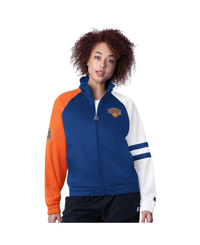 Starter Women's Blue New York Knicks Line Up Dolman Raglan Full-Zip Track Jacket