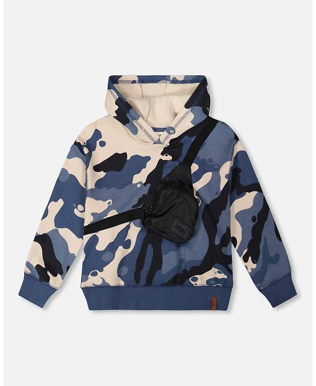 Deux par Toddler Boys Hooded Fleece Sweatshirt with Crossbody Bag Blue Camouflage - Toddler|Child
