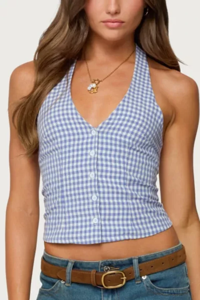 Rhythm Gingham Louise Tie Front Halter Top