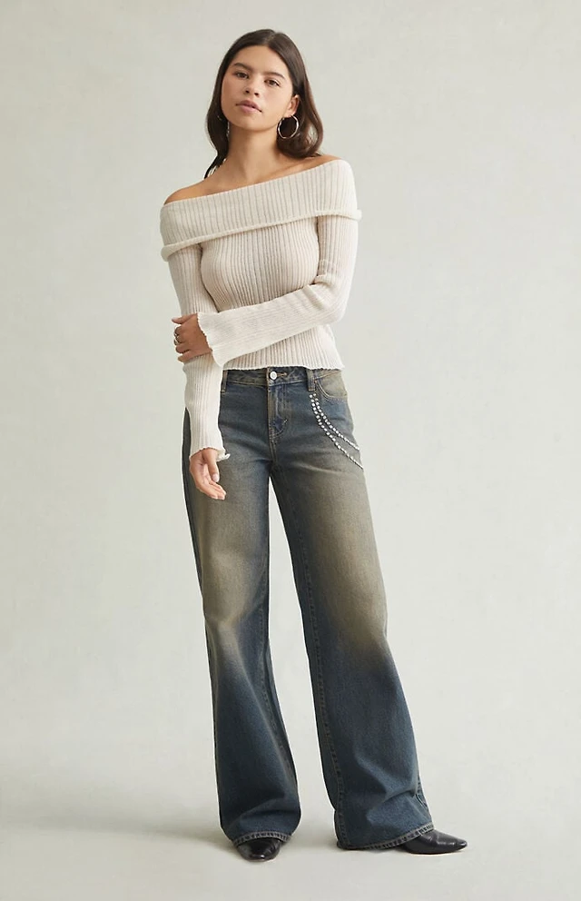 Pacsun Casey Low Rise Baggy Jeans Button Pocket Medium Blue