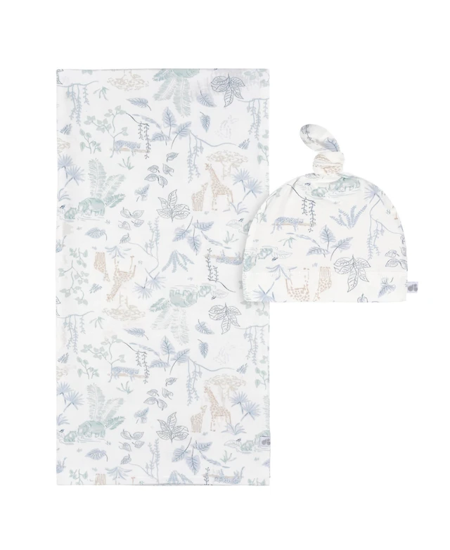 Just Born Baby 2-Piece Swaddle Blanket & Hat Set, Blue Plaid, One