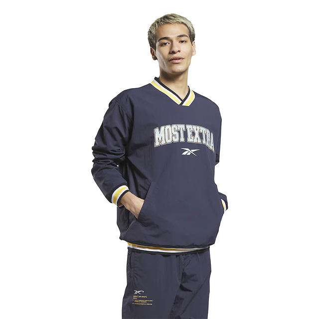 Vintage 90s Navy & White Button-Collar Sweatshirt