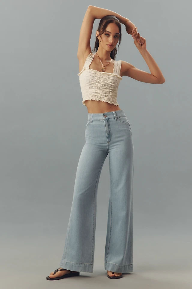 Self Contrast Aria High-Rise Crop Wide-Leg Jeans