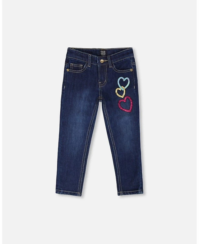 Deux par Big Girls Jeans Blue Denim with Frayed Hems and Floral Embroideries
