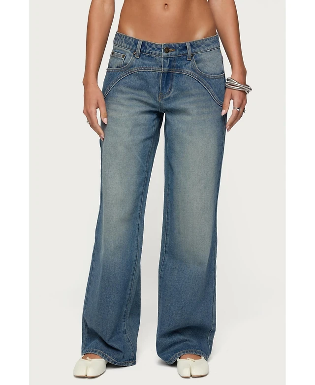 Edikted Womens Ronny Curved Stitch Low Rise Jeans