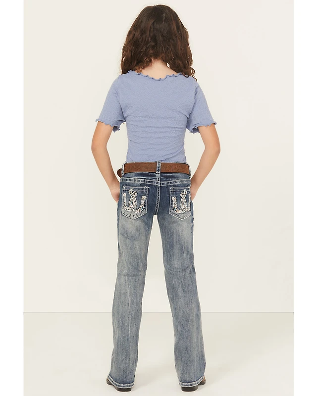 Wrangler X Lainey Wilson Girls' Dark Wash Bell Bottom Flare Stretch Denim Jeans