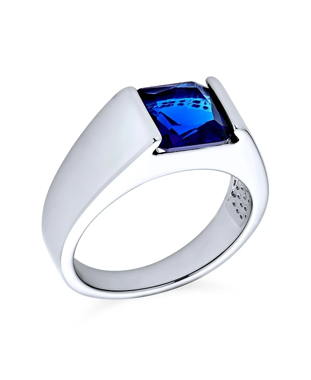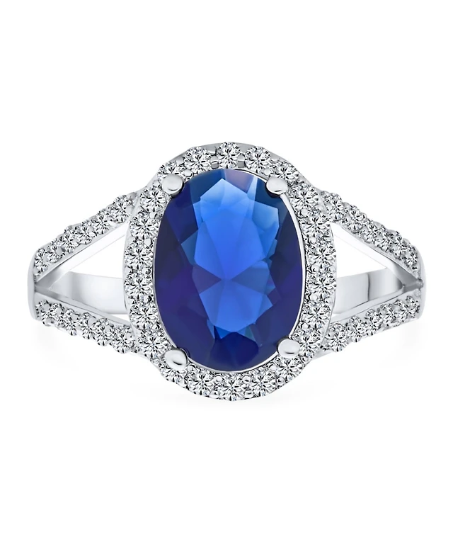 Bling Jewelry Art Deco Style Royal Blue Oval Baguette Halo 6CT Cz Solitaire Statement Promise Ring Silver Plated