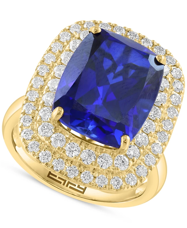 Effy Lab Grown Sapphire (10-3/8 ct. t.w.) & Diamond (1/3 Halo Statement Ring 14k Gold (Also Ruby Emera