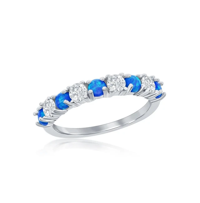 Sterling Silver Cz Blue Inlay Synthetic Opal Infinity Ring