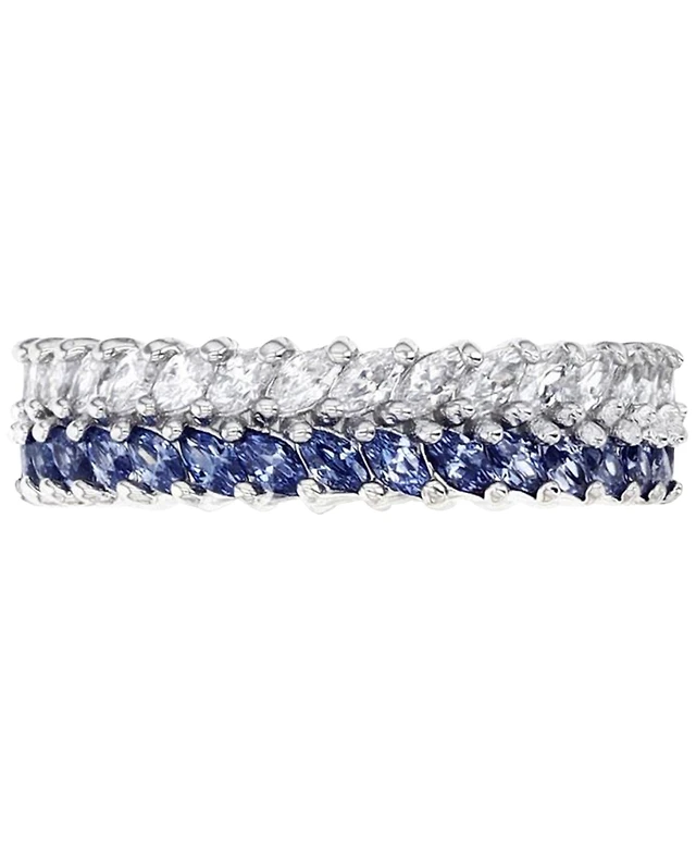 Lab Grown Blue Spinel Eternity Band Rhodium Plated Sterling Silver