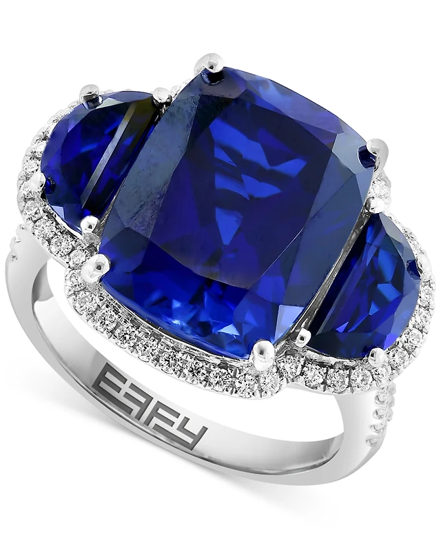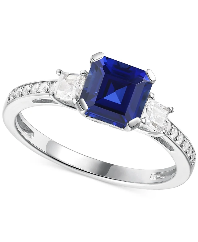 Suzy Levian New York Sterling Silver Sapphire & Created White Half Band